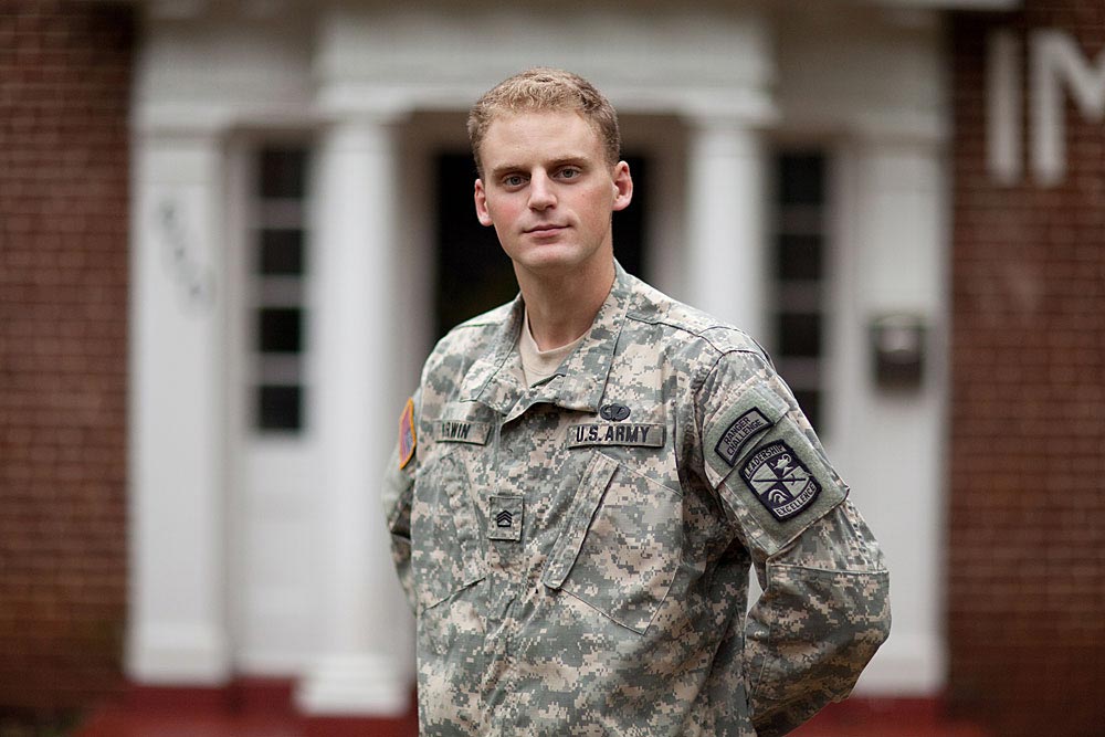 “I don’t want to take lives. I want to save lives,” Kirwin says about why he joined ROTC. “I’ve never seen myself as an aggressive person, but I do want to protect the people I love. I also like the adventure.”