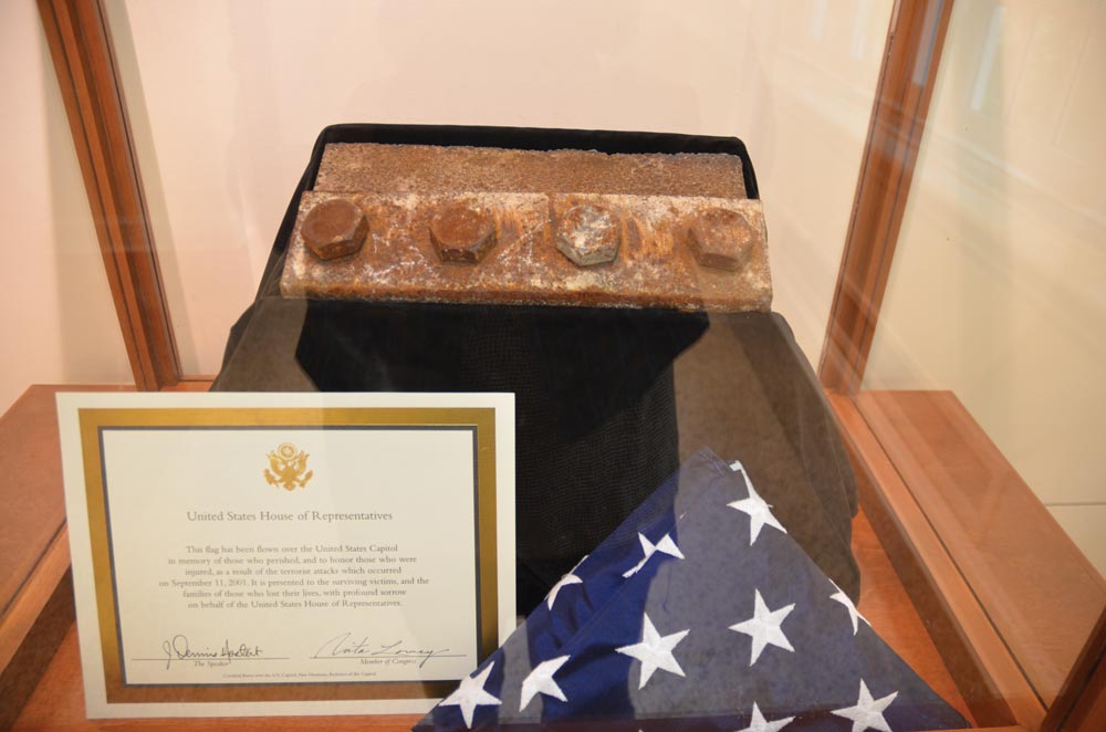 Newcomb Hall is now home to a permanent 9/11 memorial, which includes a piece of steel from one of the World Trade Center towers destroyed by terrorists on Sept. 11, 2001, and a U.S. flag donated by the family of Glenn Davis Kirwin (Col class of ’82), a UVA alumnus who died in the attacks. Evan Davis, a fourth-year government major and president of the Student Association of Volunteer Firefighters, EMTs, and Rescue Technicians at UVA, led the effort to obtain the steel. "I hope future generations will see this flag and steel and realize there were UVA alumni ... who were in the World Trade Center and the Pentagon," Davis says.