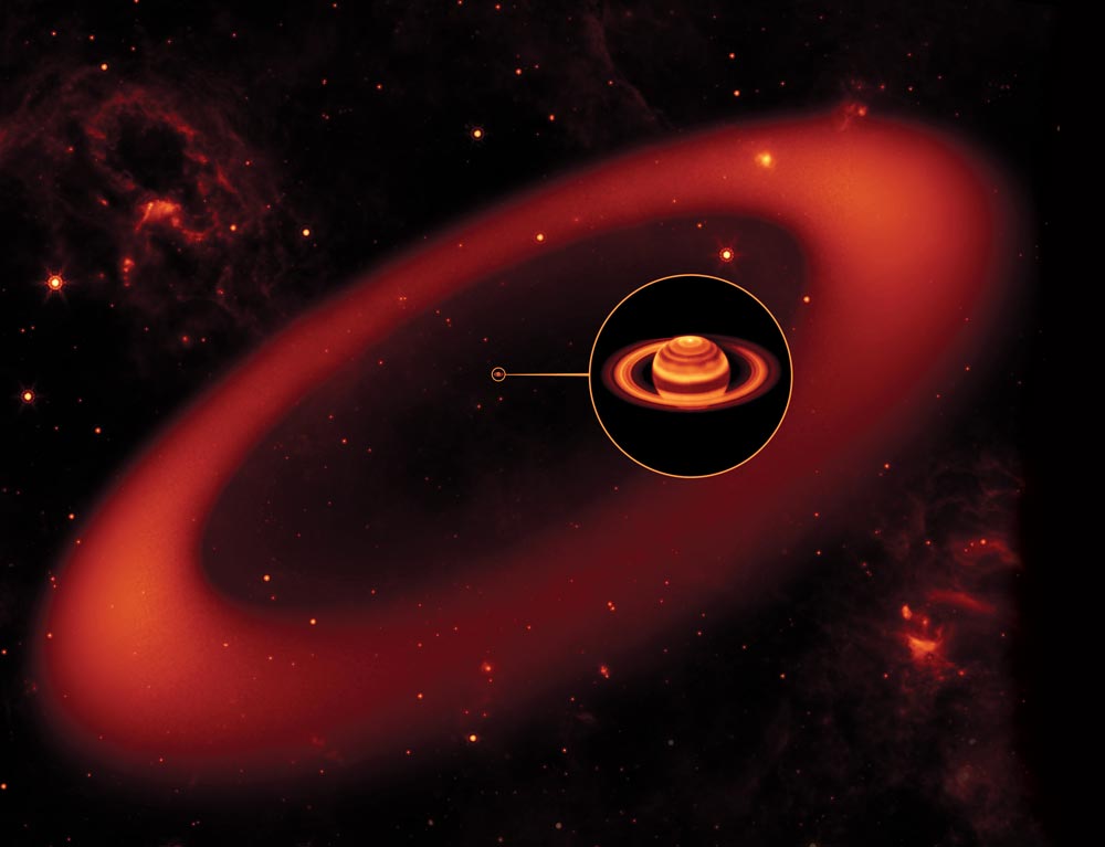 The ring, discovered using infrared cameras aboard NASA’s orbiting Spitzer telescope, is so large that its volume is equivalent to one billion Earths.