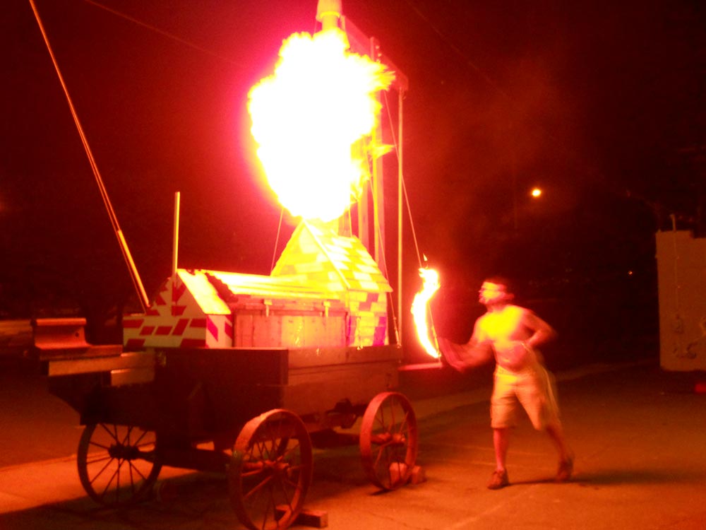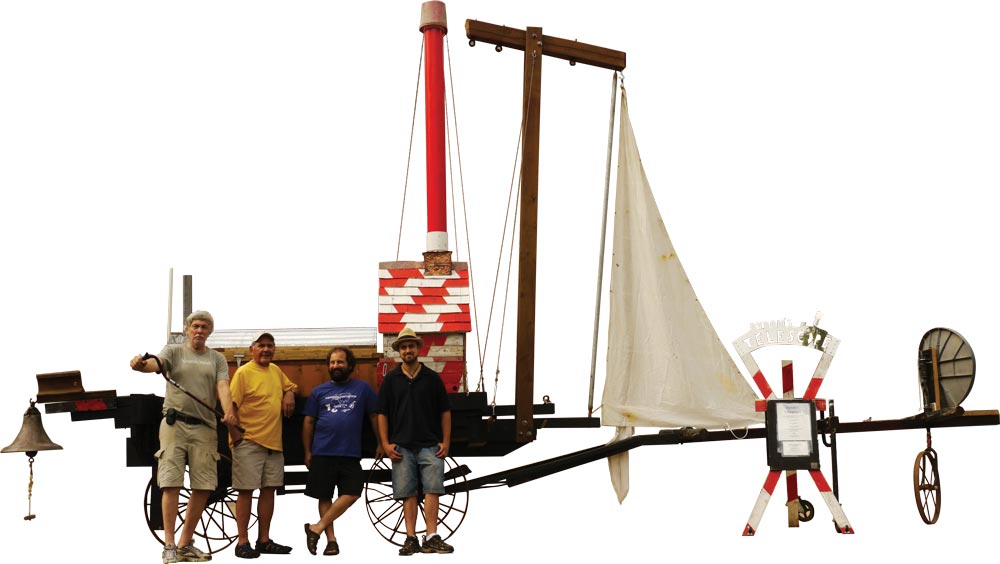 Art doesn’t just hang on a wall. Art professor Bill Bennett—with help from members of the local sculpture community, including Edward Miller and Joseph Schepps—transformed an old hay wagon into Byron’s Telescope, an interactive sculpture that audience members can climb into. A chain hoist lifts a coffin-like box and the view through a six-inch “telescope” changes dizzyingly. “Inside the chamber your perspective changes, you feel yourself being lifted, gravity shifts on your body and you come out feeling changed,” says Schepps. The name of the sculpture was inspired by the poet Lord Byron’s 1811 visit to astronomer William Herschel’s early telescope, which was 40 feet long. Byron wrote of the experience, “I viewed the moon and the stars and saw that they were worlds.”