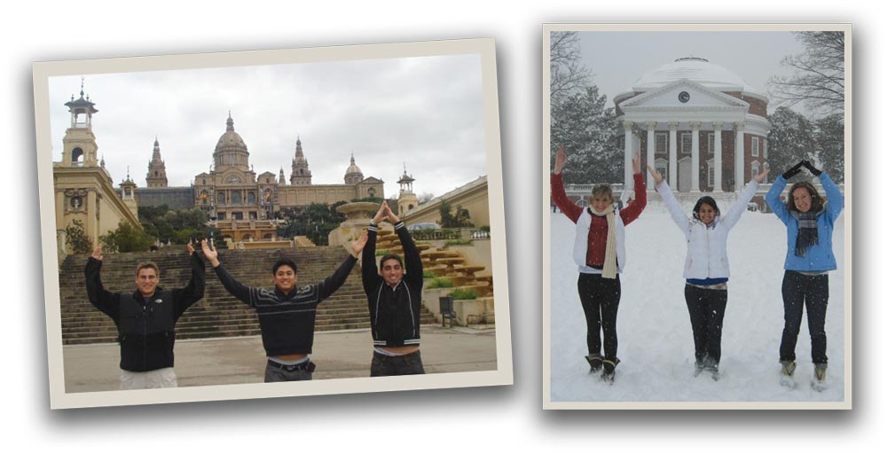 The cheer “U-V-A, Go Hoos Go!” and the choreographed arm gestures that go with it are fixtures at Cavalier sporting events. A recent phenomenon has freed the arm alphabet from the confines of Scott Stadium and John Paul Jones Arena—students have taken the cheer and run with it, spelling out U-V-A around the country and the world. Here are a few examples, submitted by students to UVA’s online “Week in Photos.”