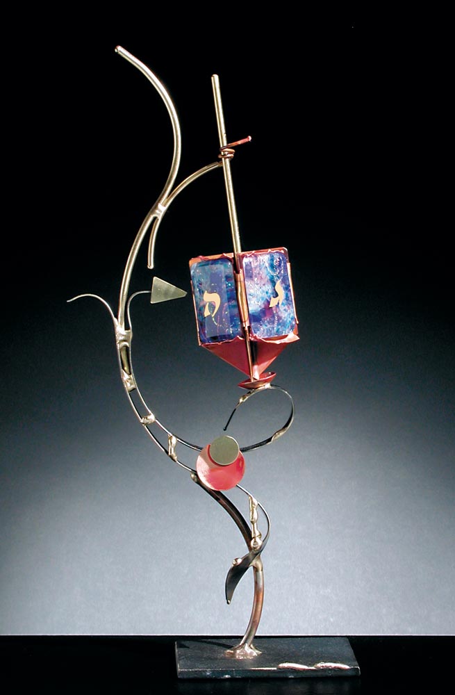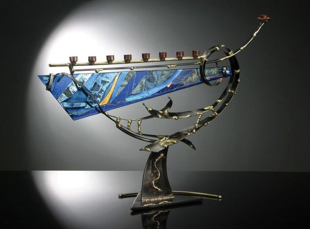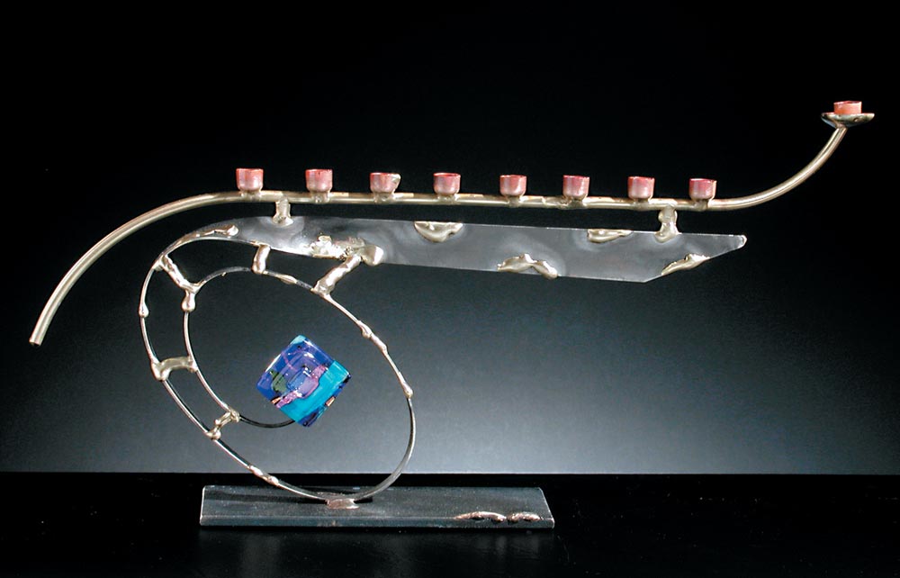 Soon after leaving Charlottesville, Rosenthal put those new skills to work developing a niche market. Late in the 1970s, he had made his first menorah, a candelabrum of glass and metal used in the celebration of Hanukkah. It sold immediately. He began making more. He branched into other traditional Jewish religious items, like the mezuzah that the devout place in doorframes. Rosenthal soon figured out that American Jews of an earlier generation, living in the shadow of the Holocaust, had tended to keep their religious articles in their closets. But the coming generation, feeling more secure, wanted to celebrate and display its faith. “Judaica became the hottest market segment of the 1990s in the crafts industry,” he says. He was at the center of it.