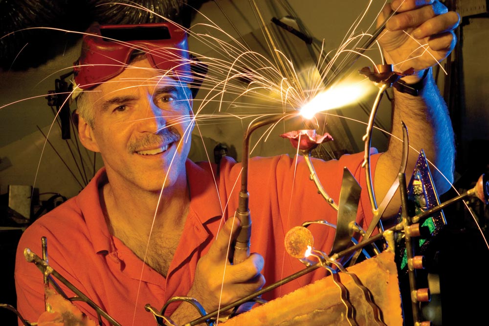 It was a welder’s torch that gave him direction in life. A lapse of motivation in Rosenthal’s undergraduate studies at Cornell found him taking a hiatus from school and helping out in his father’s business, a stove and refrigerator repair shop in the Washington, D.C., suburbs. He learned how to operate a torch to melt and repair broken stove grates. “I lit a torch and took up a piece of broken cast iron and it’s been a love affair ever since,” Rosenthal recounts, sitting behind a battered desk in his small, cluttered office. “I love working with fire and I love creating things.”