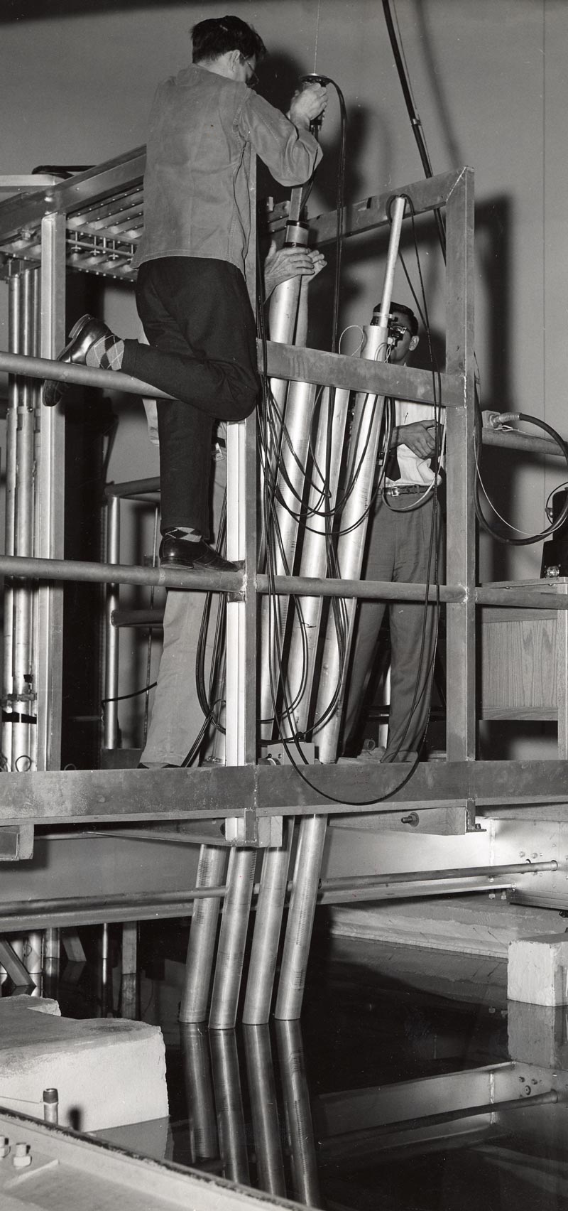The biology department used the reactor to irradiate everything from corn to tadpoles for experiments in genetics. The physics and chemistry departments wanted its isotopes. UVA Hospital needed radioactive gold and iridium pellets for cancer therapy. At one point, the facility was running around the clock, engaged in a five-year research project for Westinghouse Electric Co. The nature of its task gives a glimpse of how new the science of nuclear energy was: engineers were trying to determine the lifespan of the steel reactor pressure vessel under radiation conditions, then a critical unknown. Several universities worked on the project, but UVA was one of the few to run the reactor continuously using University-trained and NRC-licensed student operators.