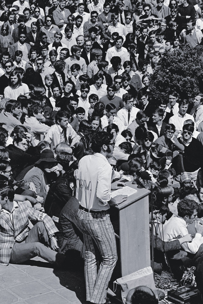 To members of the Board, the events of Wednesday, May 6, would have looked like world’s end. Dissidents had declared it Freedom Day and students began cutting classes in large numbers. The president of Student Council handed President Shannon a list of demands in front of Alderman Library, which he graciously declined. Three thousand rallied at the Rotunda, twice the number from Monday and a figure that represented more than half the undergraduate enrollment.
