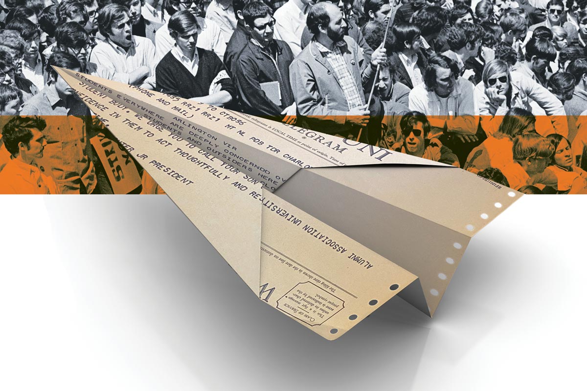 For the summer issue of Alumni News, this magazine’s predecessor, the Association’s officers commissioned an outside writer to report on the spring upheaval, then scrapped the idea in favor of reprinting a story from The Virginian-Pilot newspaper in Norfolk. Like the rest of that issue of the magazine, it made no mention of the telegram incident.