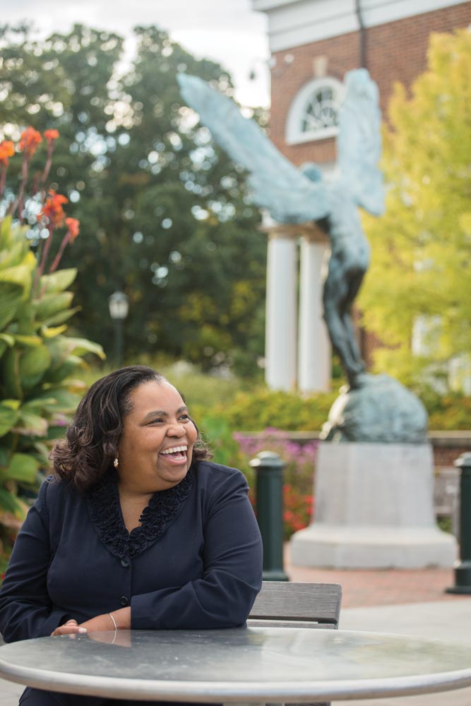 Whether baking her signature pound cake for visitors to her Peabody Hall office or traveling to talk with high schoolers about the University, Valerie Gregory sends a message to current and prospective students in racial minorities: You are not alone at UVA.