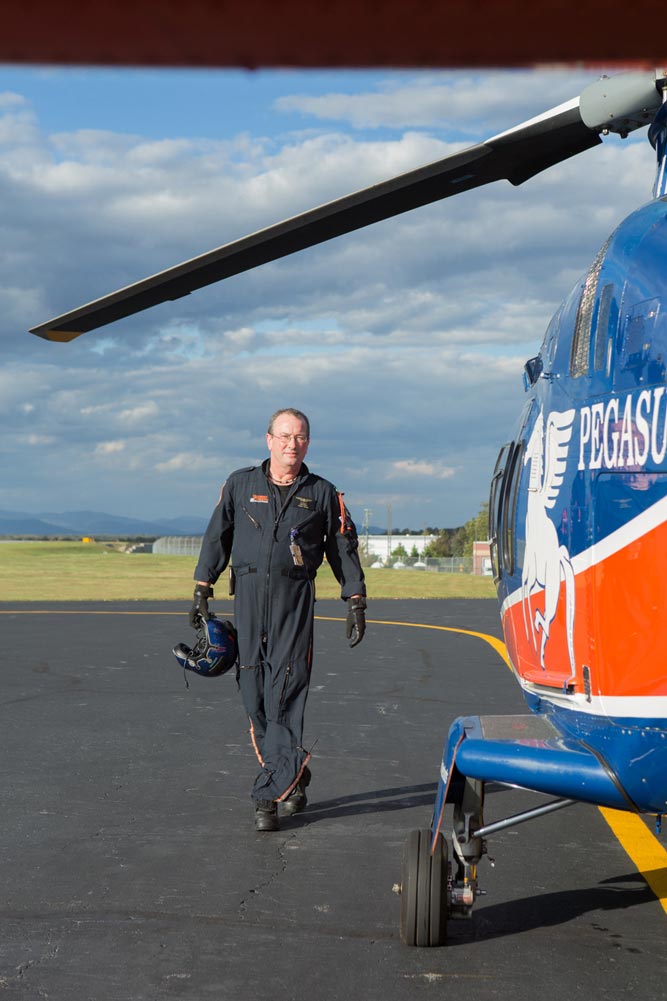 “He’s dealt with every type of patient and every type of situation,” says paramedic Karen Hayes, one of more than 20 paramedics and flight nurses who have trained under him. “He’s very calm under pressure. I call him my ‘Pegasus Dad.’”