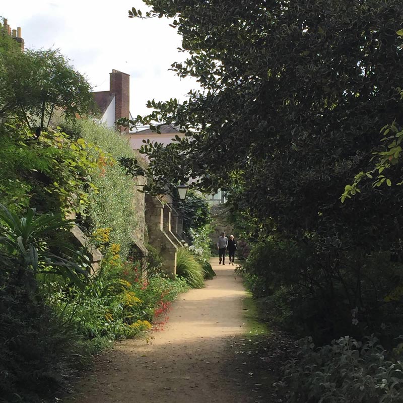 During Jefferson’s service as American envoy to France, he made three trips to England, but didn’t record his Oxford visits. Although he may have been reluctant to praise America’s recent adversary, I imagine Jefferson the botanist was fascinated by the extensive gardens. Oxford colleges’ gardens vary as much as the architecture, and the designed landscapes integrate trees, shrubs and flowers with the buildings.