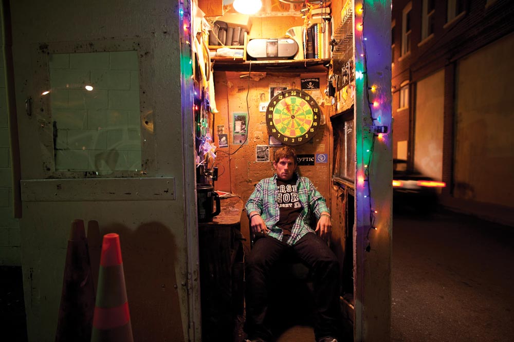 Eckman (Col class of ’00) presents Charlottesville’s Corner Parking Lot as a haven for counter culture, the rickety parking lot booth as an incubator for free thinkers and the long hours collecting dollar bills as a meditative practice. In contrast, the parking lot’s clientele quibble over fees, drive through the exit without paying—often with an angry attendant holding on to their bumper—and sometimes shower the attendants with derision and abuse.