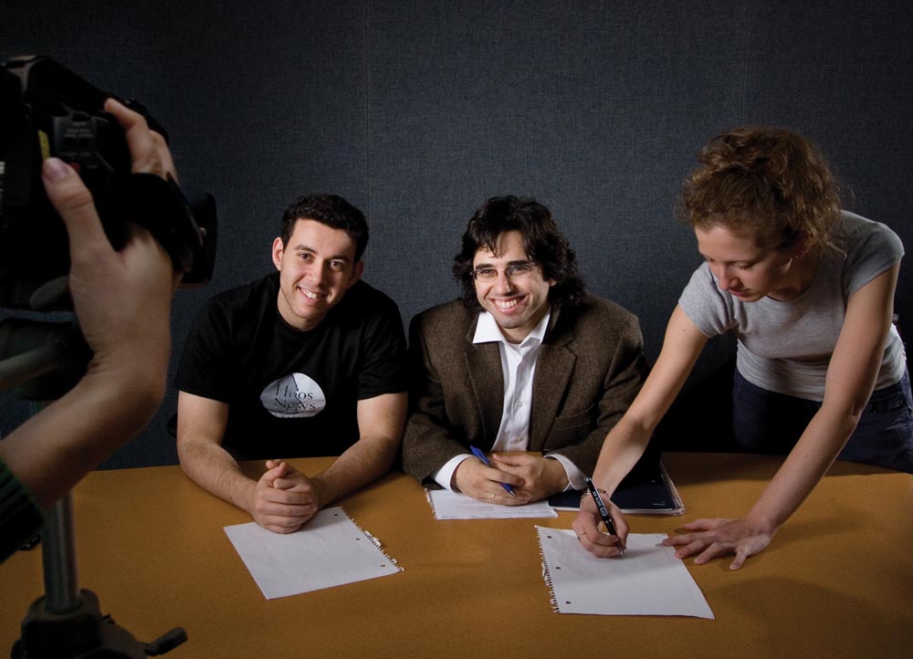 Along with their on-camera roles, the two served as videographers and editors. They learned a complicated video editing program and spent about 50 hours in the library piecing together the pilot. “We effectively destroyed his iBook,” says Abdelkarim.