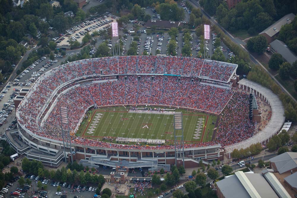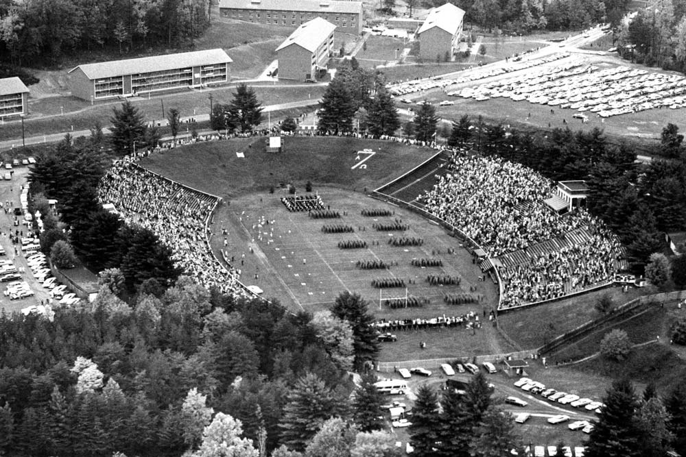 As football joined collegiate boxing as a major sport at the University, work began in 1930 on a new stadium to replace Lambeth Field. Scott Stadium—named for the family of University rector and benefactor Frederic W. Scott—was officially dedicated on Oct. 15, 1931. Former Gov. Harry Byrd was on hand for the ceremony, and in the stadium’s inaugural game Virginia lost to VMI. The new facility, located to the west of Grounds, just beyond the last tee of what was then the University Golf Course, offered parking for 5,000 cars and included concrete bleachers built into the hillside for 22,000 spectators. As the student newspaper College Topics noted in 1934, a small brick building was erected near the stadium’s open end that served as the first locker room. “No longer will the teams have to pick themselves a soft spot on the grass to rest between halves while a curious group of spectators stare and offer suggestions.” Today known as the Carl Smith Center, Home of David A. Harrison III Field at Scott Stadium, the facility has a capacity of 61,500.