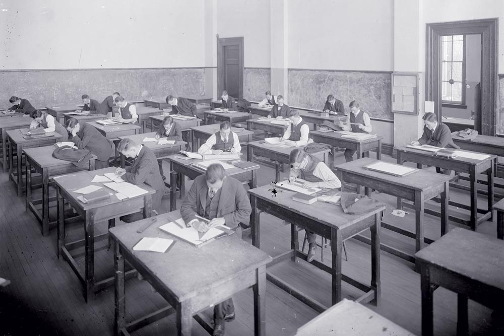 In the May 1916 Alumni News, the Engineering School of the University of Virginia announced a special winter term course in highway engineering. The course was offered “in recognition of the growing interest in Good Roads in Virginia.” Students would have access to facilities in Cocke Hall, including a wood shop, a metal shop, drafting rooms and survey equipment. Although the labs and shops look rustic today, they were considered state of the art in 1916.