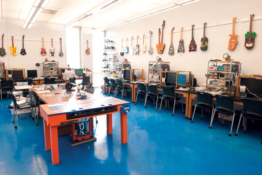 Another breakthrough: the emphasis on collaboration. One of the school’s newest buildings—Rice Hall, built in 2011—was created with interdisciplinary work in mind, Benson says: Its six floors are made up of computing, design and robotics labs, as well as open collaborative spaces where students from all departments work together at tables, white boards and 3-D printers.