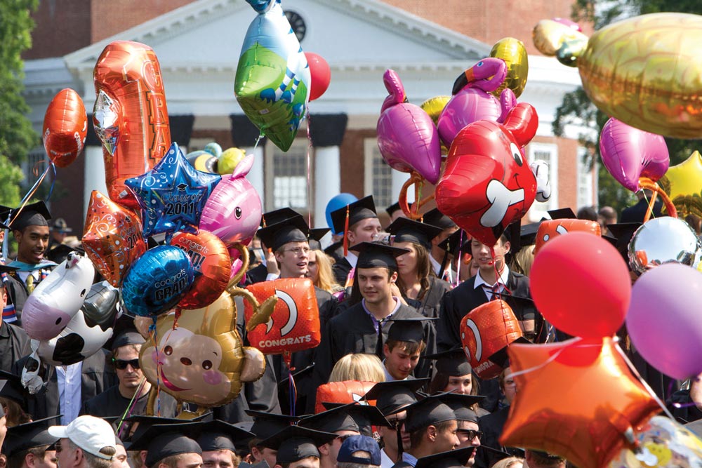 During the University’s 182nd Final Exercises, 6,248 degrees were conferred to the Class of 2011. This year’s ceremony was particularly colorful, as the number of balloons floating over the heads of new graduates seemingly rivaled the number of degrees conferred. The commencement speaker, Virginia Gov. Bob McDonnell, offered graduates advice he called “well worn” but worth repeating: “Follow the Golden Rule; do unto others as you’d have them do to you. Help and serve your neighbor. Be kind and generous to others. Take responsibility for others, and make no excuses. Give back to your community, generously. Live today well. Do not worry about tomorrow. … Always vote. Tip well. Never miss the opportunity to enjoy a sunset or a sunrise. And always try to follow the rules of the Boy Scouts and the Girl Scouts; No. 1, be prepared, and No. 2, always try to leave the campground a little better than you found it.”