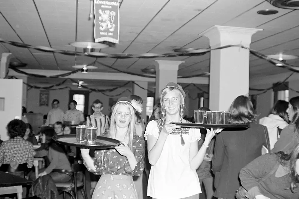 In the 1970s, when the legal drinking age was still 18, a student beer hall opened on the first floor of Pavilion XI and became a popular hangout with bands and beer. Clara “Kiki” Steele Eden (Col class of ’80, Med class of ’88) remembers disappearing into the dark space as she entered to dance. “It had lots of music,” she says. “It was an alternative place to go, and I enjoyed that.”