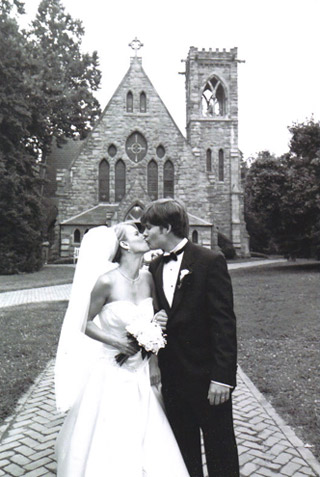 Dixie Shurling (Col class of ’02, Nurs class of ’05) and Andrew Mills (Col class of ’01) share a love of adventure. They got to know each other one night during the spring semester of Dixie’s third year, when she visited mutual friends where Andrew was also hanging out. She planned to go to the library afterward.