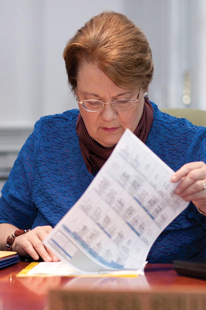 Her other pastime is volksmarching. Sullivan has been a volksmarcher since 1984 and has completed about 700 sanctioned events, which consist of organized walks of 10 kilometers or longer. A volksmarch is planned as part of the festivities surrounding Sullivan’s inauguration this April. “Virginia is a hotbed of volksmarching in the United States, so I’m looking forward to the opportunity to do some,” she says. “It’s done principally for health reasons, but also because it’s fun, and I enjoy it.”