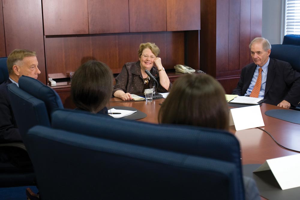 She’s had one-on-one meetings with Virginia’s governor and secretary of education. She’s attended bond hearings in New York, development events around the state and an alumni reunion in Los Angeles. She’s met with faculty members, alumni clubs, and athletics teams and coaches. She’s met with individual legislators in their hometowns around the state, state agency heads, and all of the Virginia congressional delegation in Washington, D.C. She’s been to UVA’s College at Wise and has spoken to numerous student groups and University-affiliated foundations. She’s met with local school superintendents, members of the Charlottesville city council, the Albemarle County board of supervisors and local ministers.