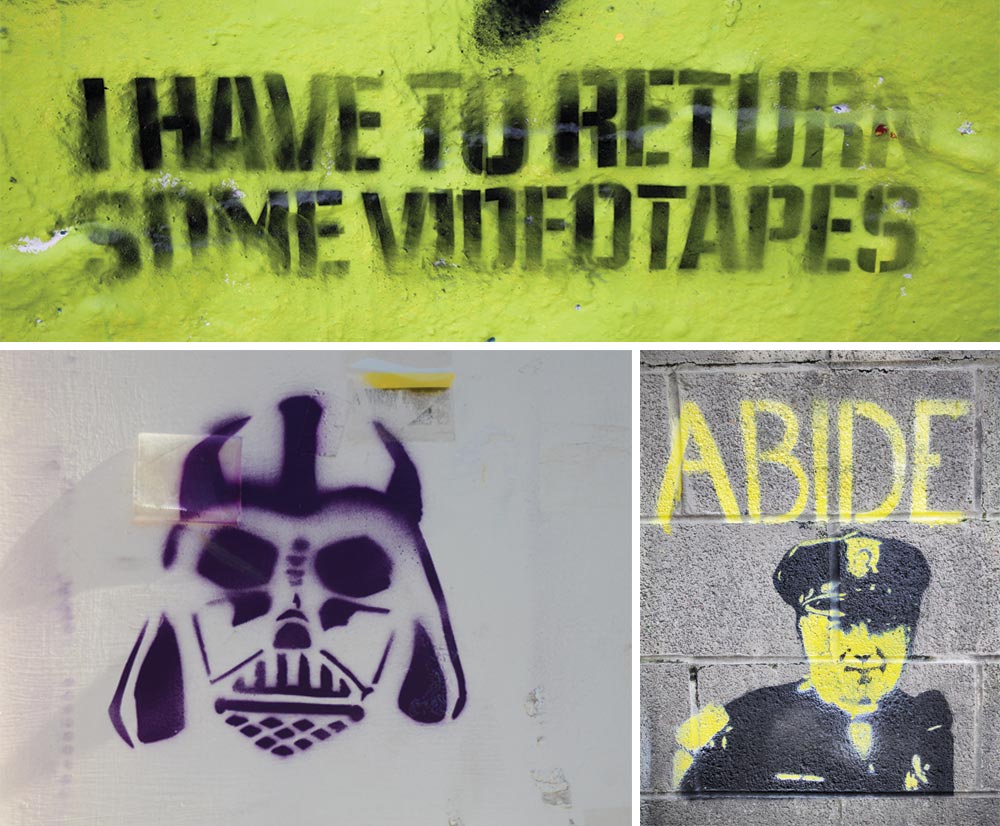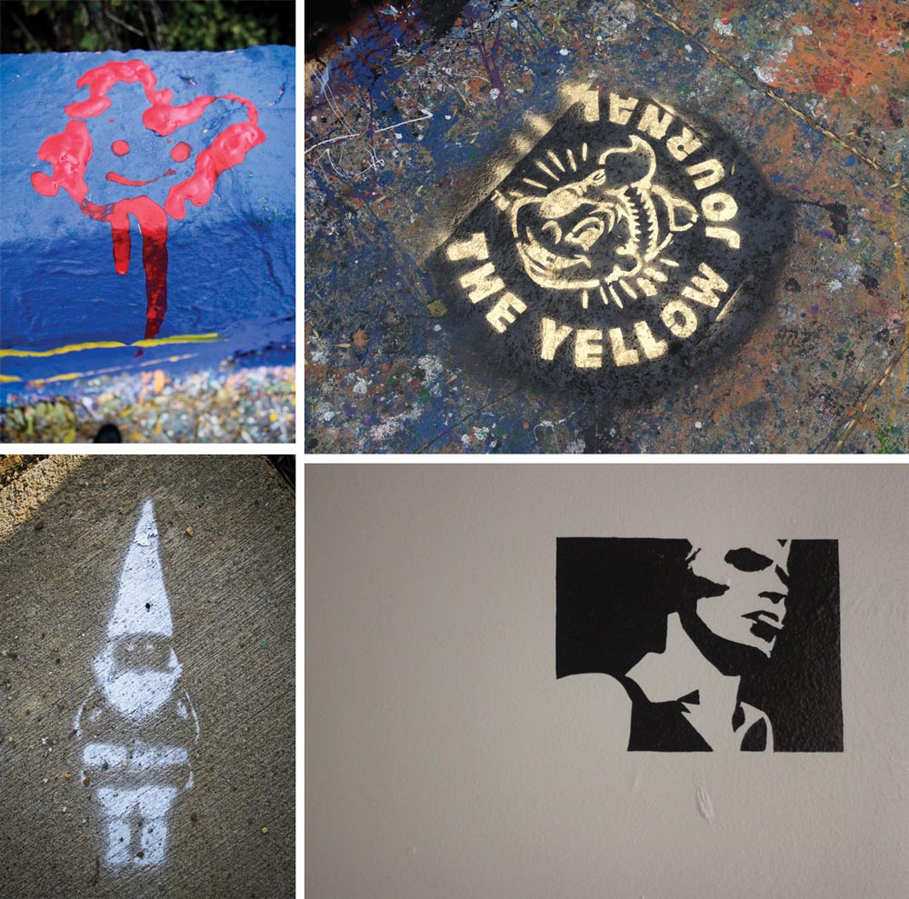 While Chen and other aerosol artists favor the freedom of a large wall and cans of paint, other artists at UVA choose a different approach—stencils have been popping up all over Grounds, on the back side of Beta Bridge, under stairwells in the art building and on small billboards. An artist painstakingly plans and cuts an elaborate, usually small, stencil at home, but once the stencil is cut, the image can be placed quickly again and again.