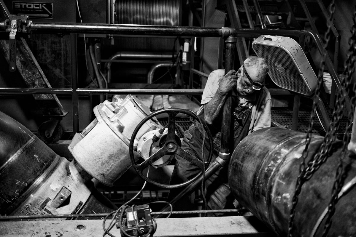 Then they load the coal onto a rattling conveyor belt that feeds the coal into three of the boilers. They run natural gas into the other two from an underground pipeline.