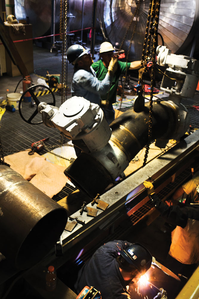 It takes just 90 minutes for the pipes and boilers to cool enough so that workers can begin. Then it’s a precisely choreographed 24-hour marathon—broken into 12- and 16-hour shifts—that is five months in the planning.