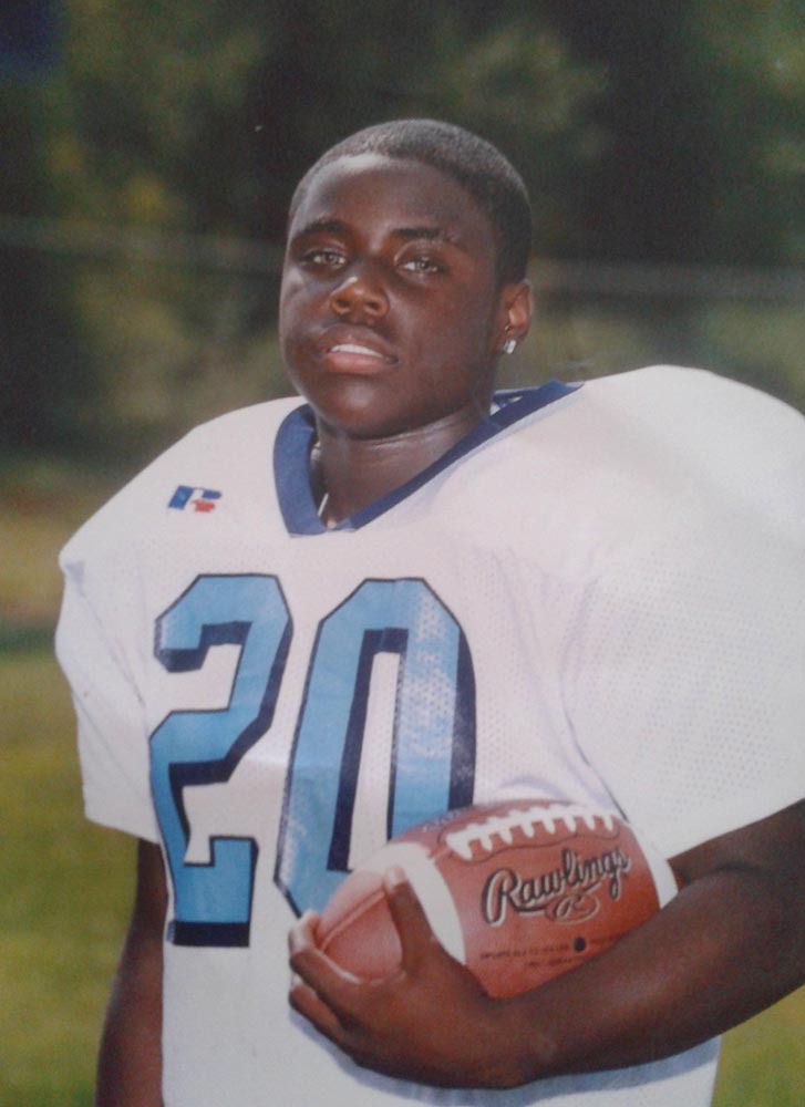 I’d have to say when I was in seventh grade and it was the first time I was ever running the ball. In fifth and sixth grade, there was a weight limit on players who played offense, so I played defense and couldn’t run offense. But in seventh grade, on the first play of the game, I’m lined up at kick return. I picked up the ball and scored on the first play, first touch of my first middle school game. Right then and there, I said, “I think I can play football.”