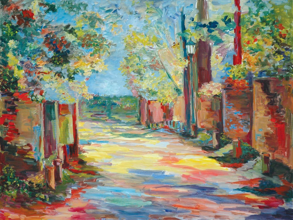 The impressionistic work eventually got a name—“Garden Alley”—and received top honors in the Alumni Association’s annual Student Art Contest. Zaman, a native of Bangladesh, will receive a $500 scholarship, and her work will hang in Alumni Hall for a year.