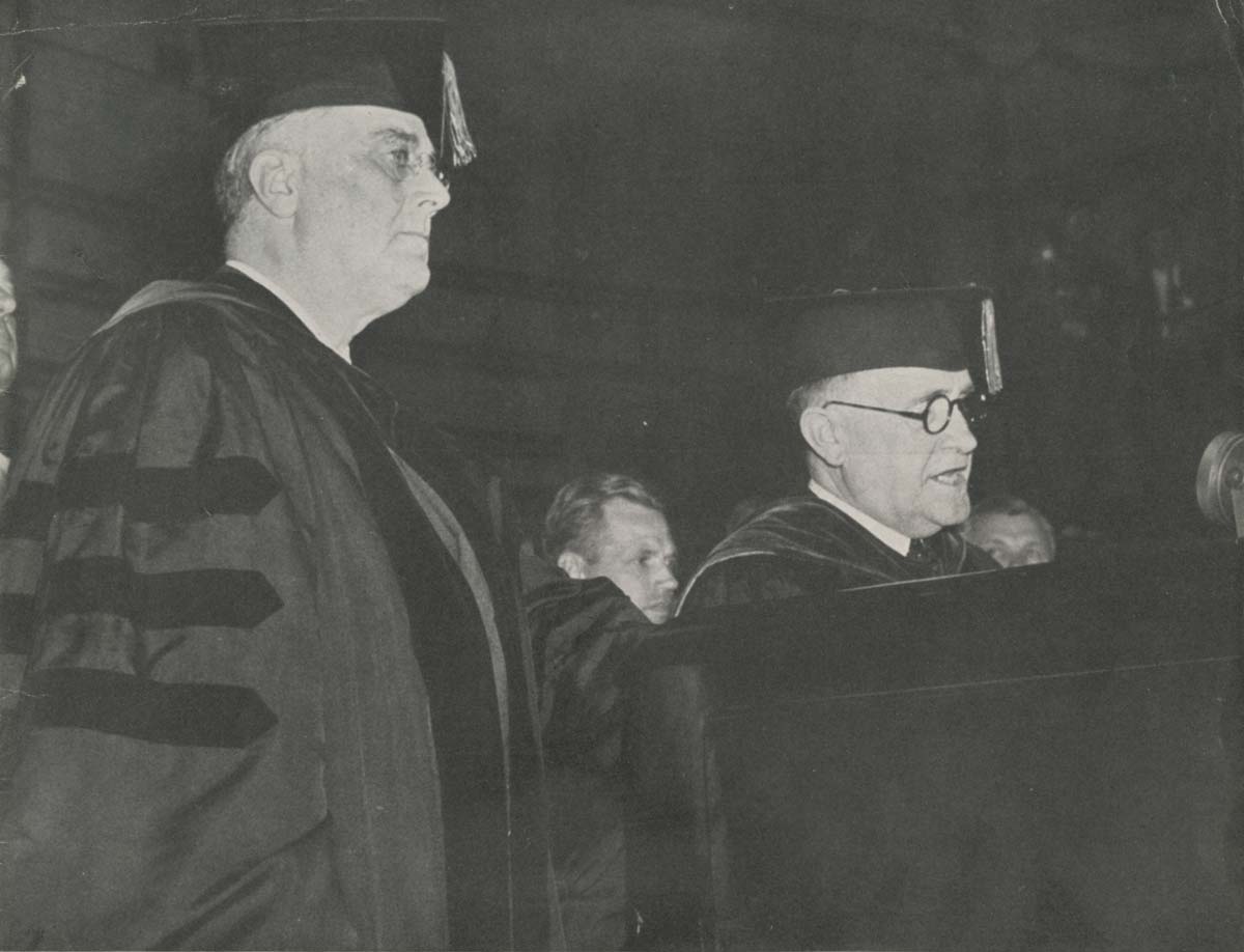 Then U.S. President Franklin Delano Roosevelt addresses the Class of 1940 at graduation.
