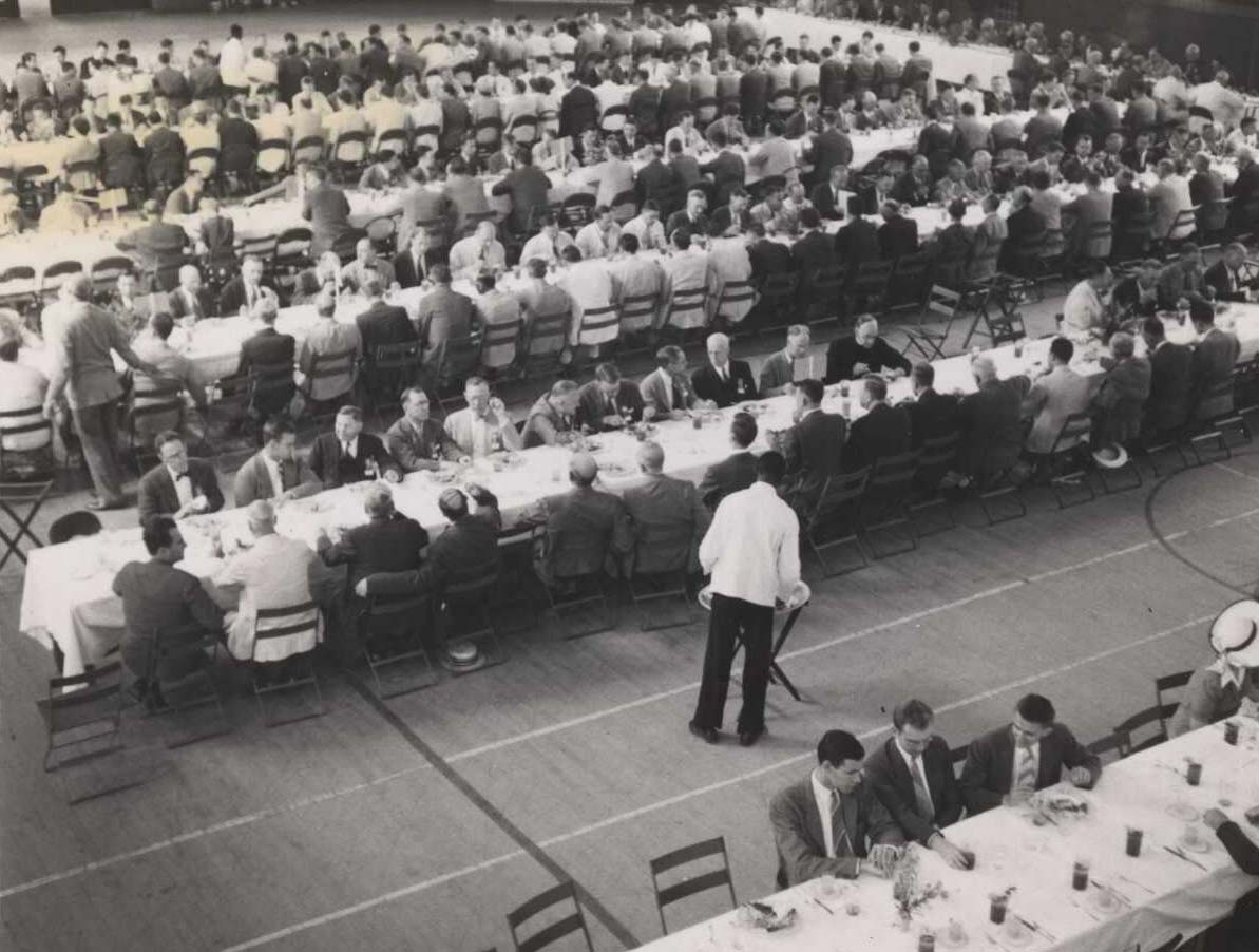 A banquet in Memorial Gymnasium during graduation and Finals weekend.