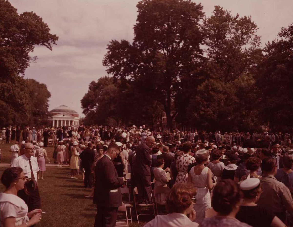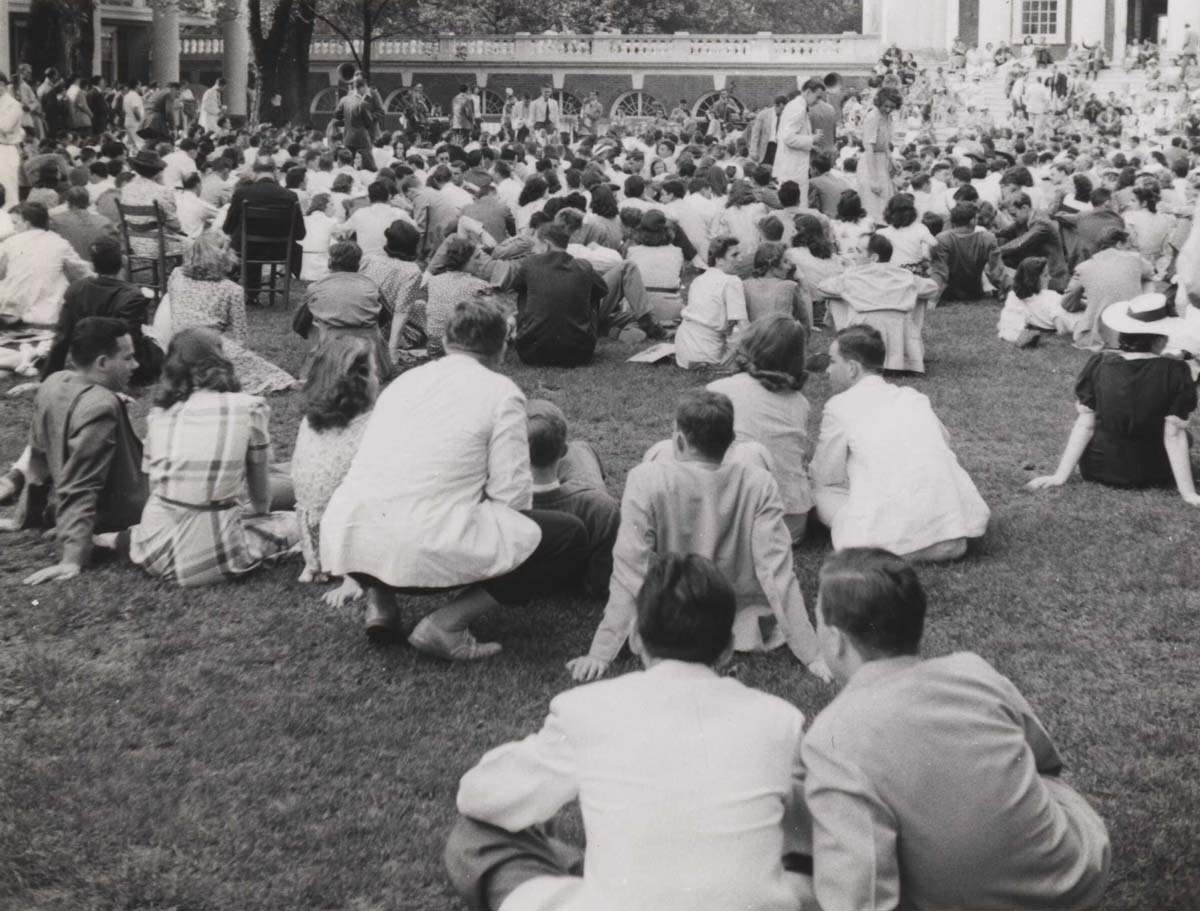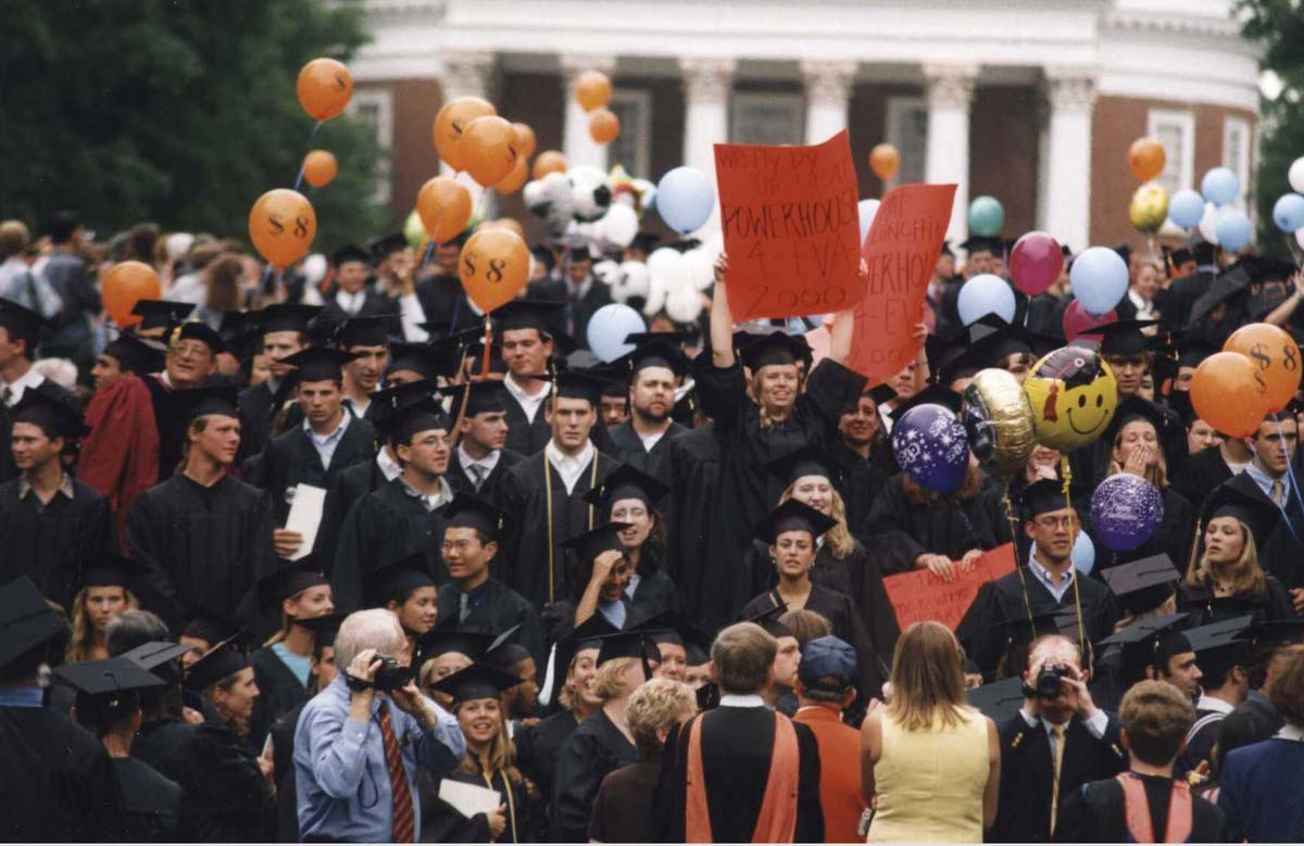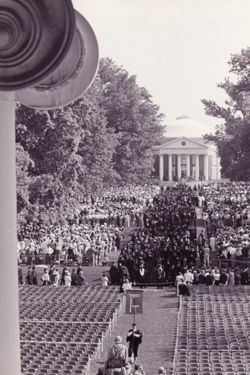 This weekend, more than 6,500 students will wear “the honors of Honor” and graduate from the University of Virginia. Here, take a look back at how Final Exercises have been celebrated over the past several decades, from barbecues to drinking from the loving cup and, of course, walking the Lawn.