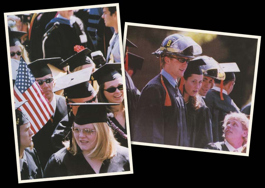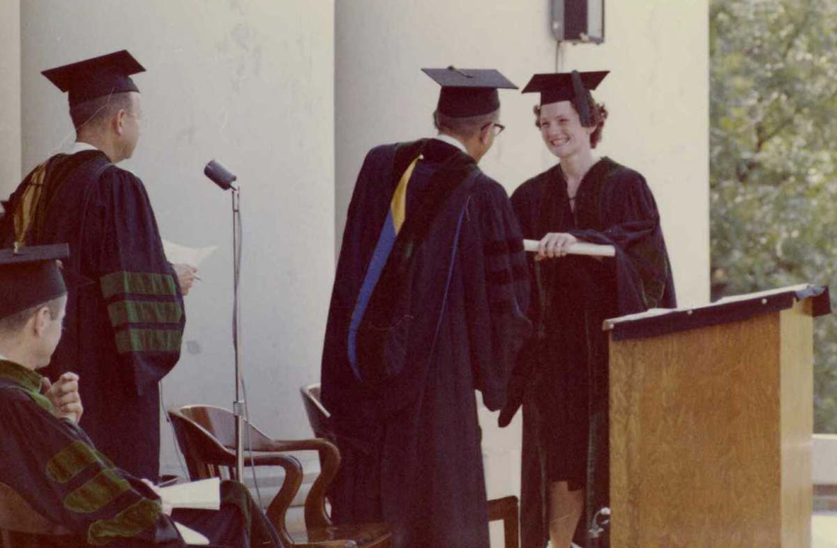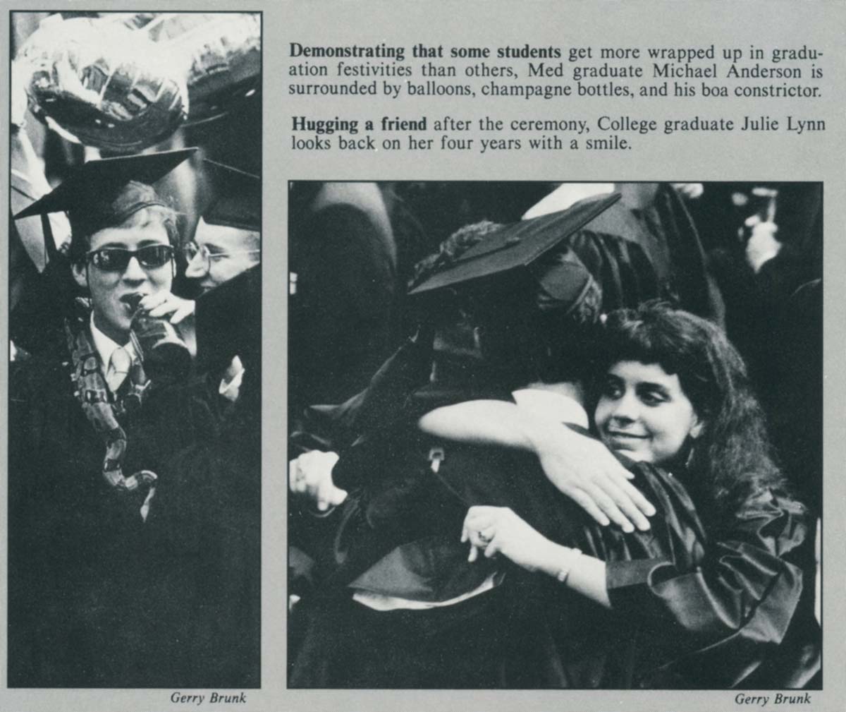 Scenes from Final Exercises, 1978. One graduate pasted “Yipee!” on her mortar board.