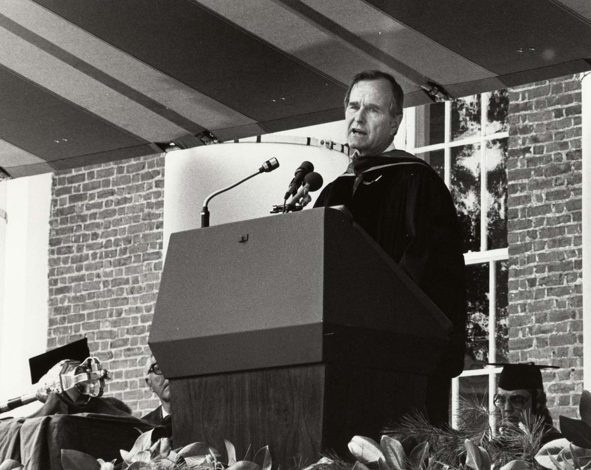 Vice President George H. W. Bush gives the commencement address in 1981.