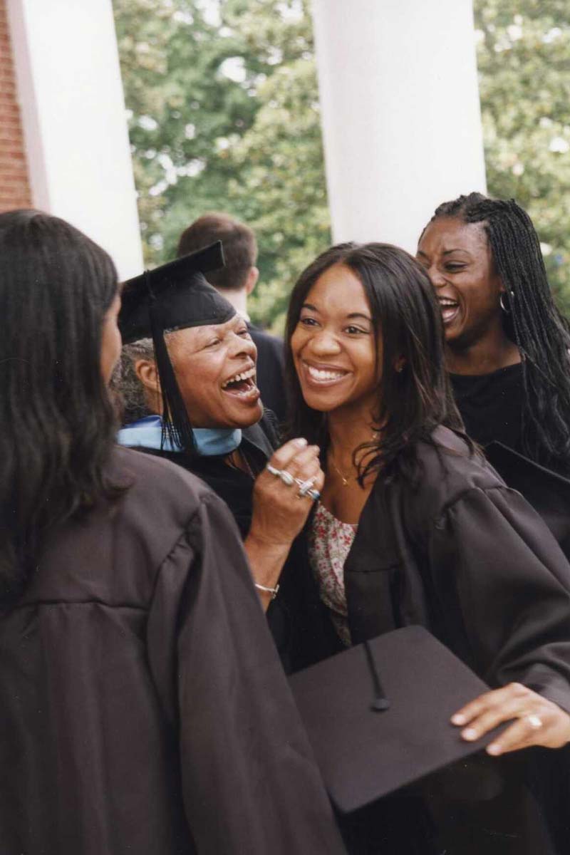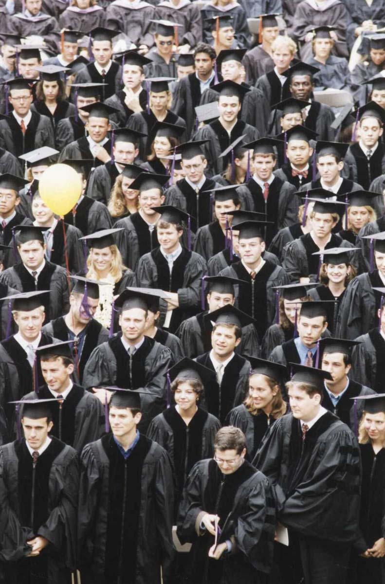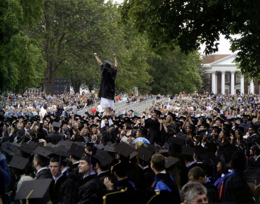 The University also changed its usual graduation practice this year: After the president conferred all degrees in a ceremony on the Lawn, the graduates went to separate assemblies conducted by their schools and received their diplomas from their deans.