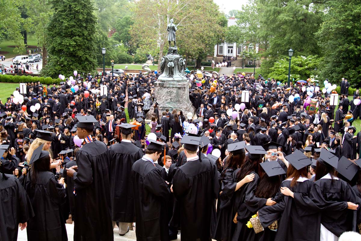 Students gather around Moses Ezekiel’s Jefferson statue before walking the Lawn in 2010.