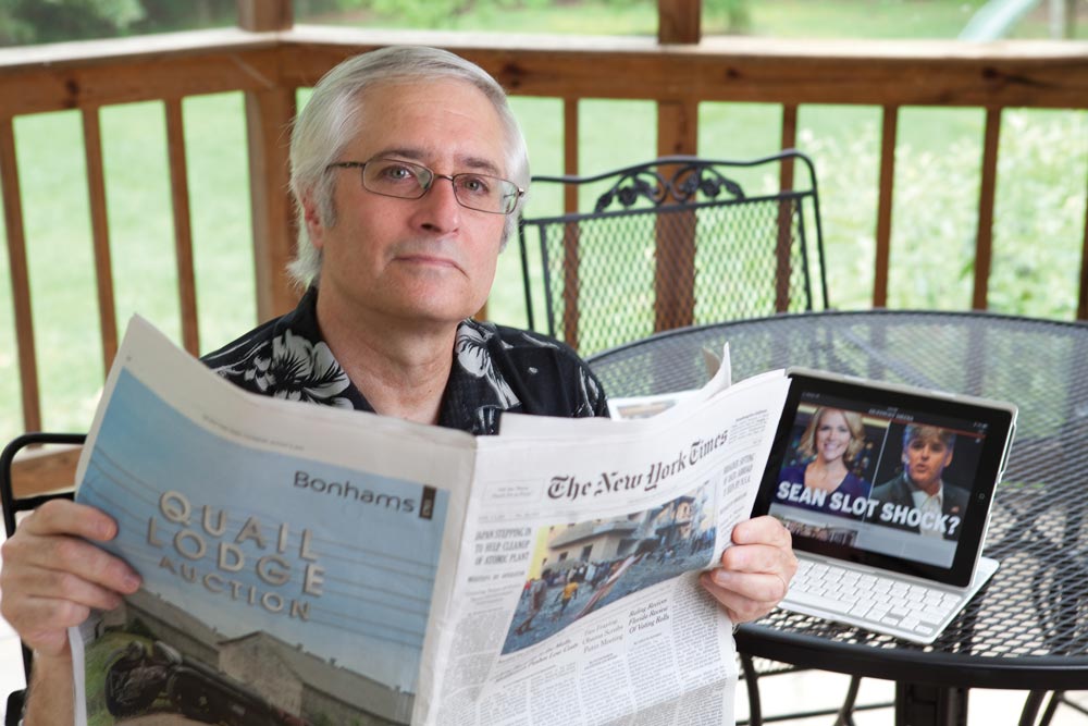 Each morning, Bruce Williams, a UVA media studies professor, walks outside to pick up the New York Times lying in his driveway and then reads it over breakfast. “I’m an old guy,” he says. “It’s part of my morning ritual.” But he admits that, truly, he takes in a steady stream of news all day long. “The New York Times is my home page on my computer,” he says. “And if push came to shove, I’m not sure I could tell you where the information I get comes from, whether it was the print edition or online, whether it was the Times or CNN or an article that was reposted on the Huffington Post.”