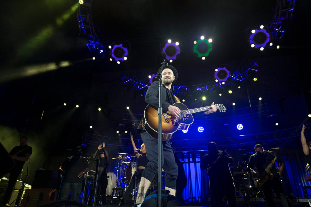 After Grande, Justin Timberlake and his band performed an acoustic rendition of Sam Cooke’s civil rights anthem “Change is Gonna Come,” stilling the crowd.