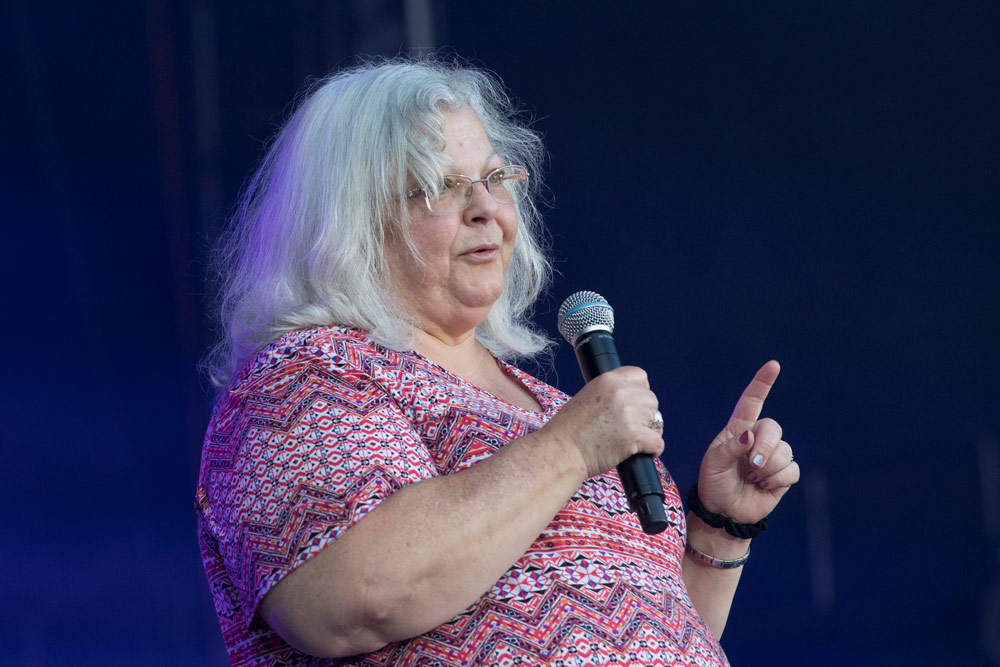 In one of the more emotional moments of the evening, Matthews welcomed to the stage Susan Bro, mother of 32-year-old Heather Heyer, who was killed August 12 when a car rammed through a crowd. At the concert, the audience members rose to their feet, clapping.