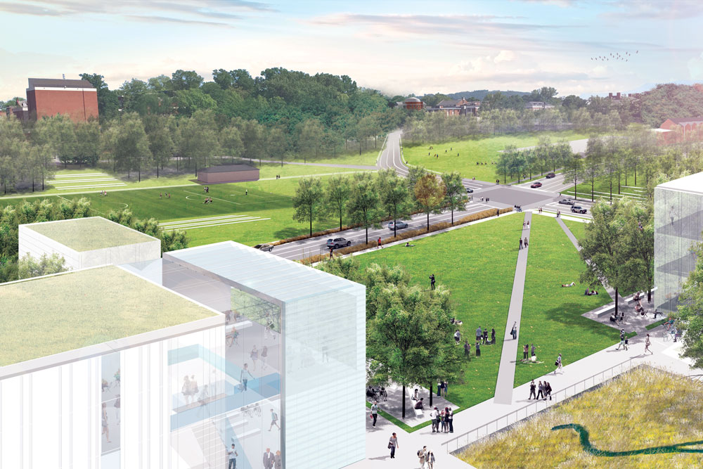 Barefoot notes that the project reflects a distinct shift in thinking about land use since the UVA Foundation bought the property nearly two decades ago. “The conversation has always been, ‘What should we put there?’” he says. “It’s fascinating that we’ve landed on putting green space there. I think it’s beautiful.”