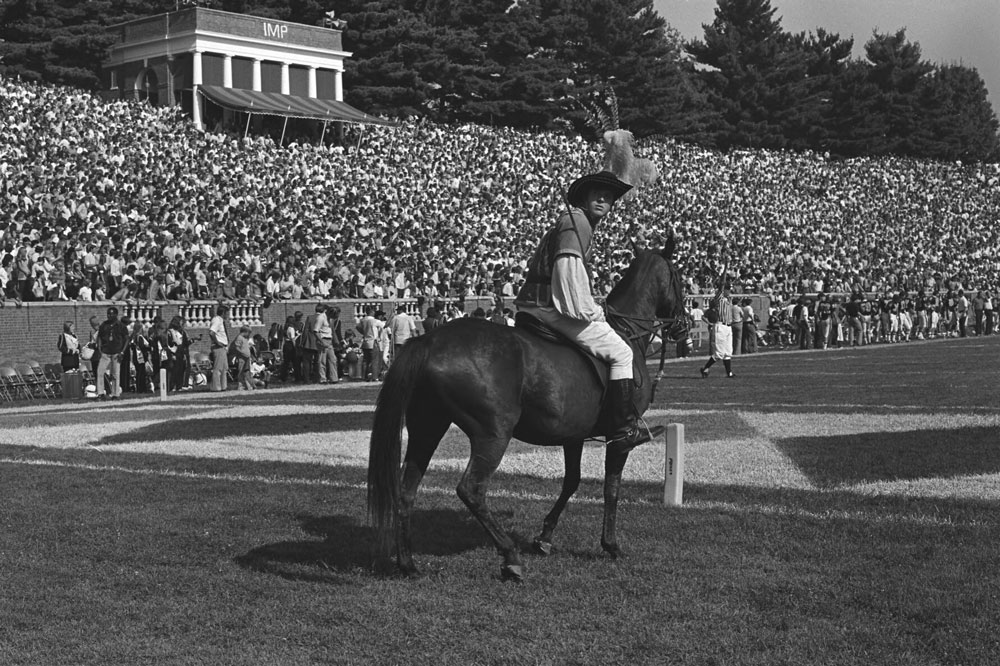 In 1963, a horseback rider in Cavalier garb became the mascot. Sports marketing was still in its infancy when Turner took the job in the early 1980s. With no formal training, he flew by the seat of his khakis.
