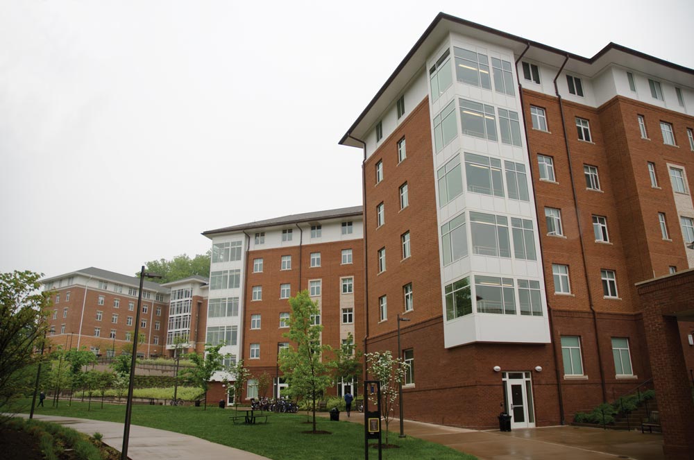 “It was more efficient to tear them down than to renovate them,” says Gay Perez (Col class of ’87, Educ class of ’92), associate dean and executive director of housing and resident life. The construction process allowed for the recycling of more than 75 percent of the materials from the demolished structures, with debris going to a recycling facility that crushed masonry to create new building materials.