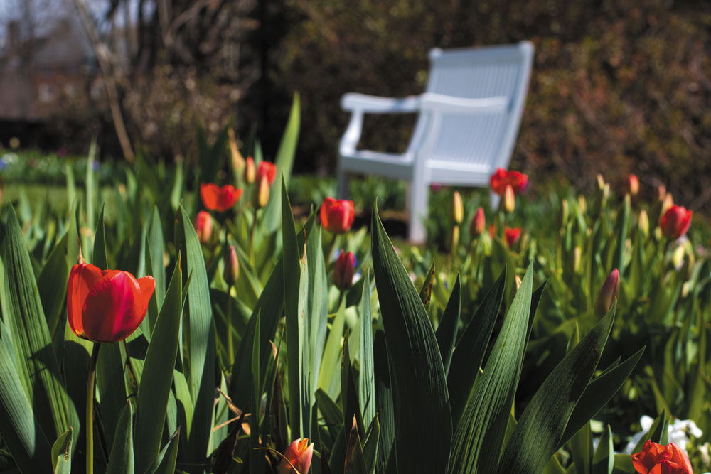 Each year, as the cold loosens its grip on the air, daffodils announce the arrival of spring in the pavilion gardens. Soon come the brightly colored hyacinths and tulips, the whistle of the tufted titmice, and the cheery sounds of robins, cardinals and blue jays.