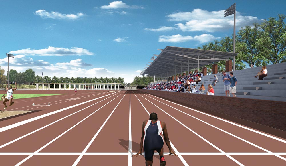 Now, as plans develop for the next decade, two more facilities are taking shape. When the ACC outdoor track and field championships come to UVA’s Lannigan Field this spring, athletes will find a new track with a larger infield, new lights and lockers, an entry plaza and permanent stands to hold 1,500 spectators.