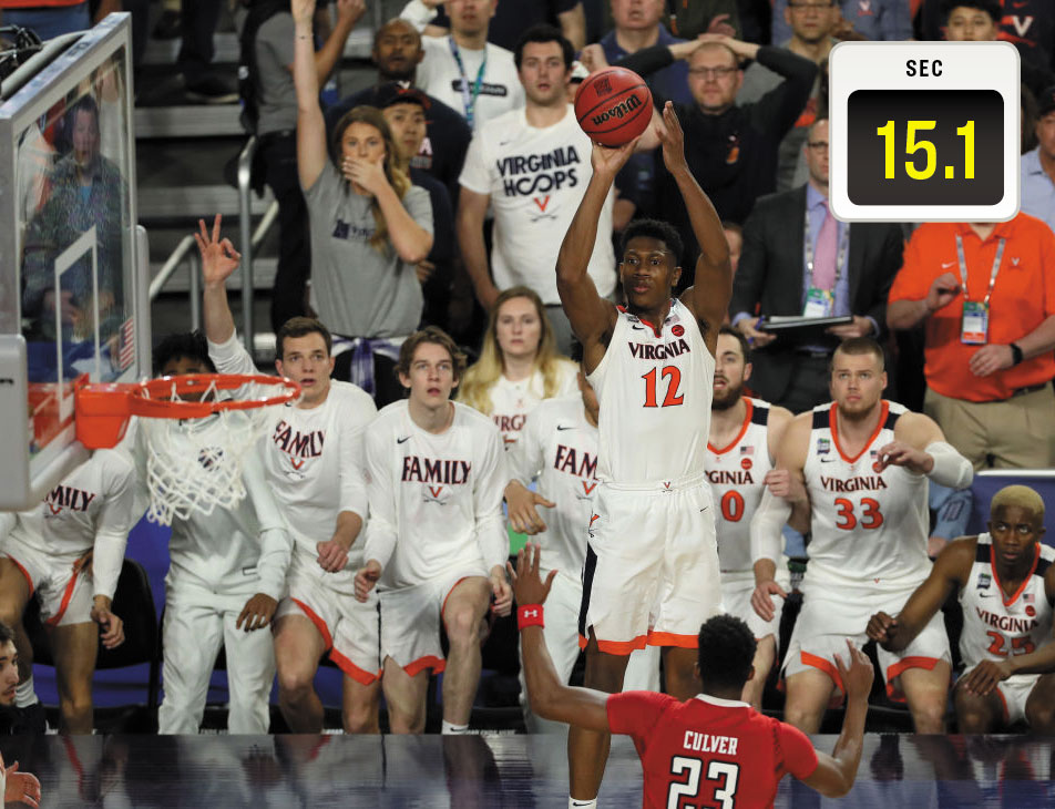 LOST AMID the high drama of tournament victories over Purdue, Auburn and Texas Tech was Virginia’s tense Sweet 16 clash with Oregon. Seeking to become the first No. 12 seed ever to upset a No. 1, the Ducks led 45-42 with 5:21 remaining when Kihei Clark elevated for a right-wing 3-pointer.