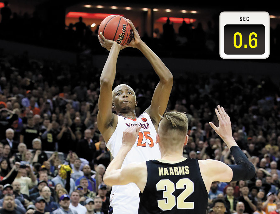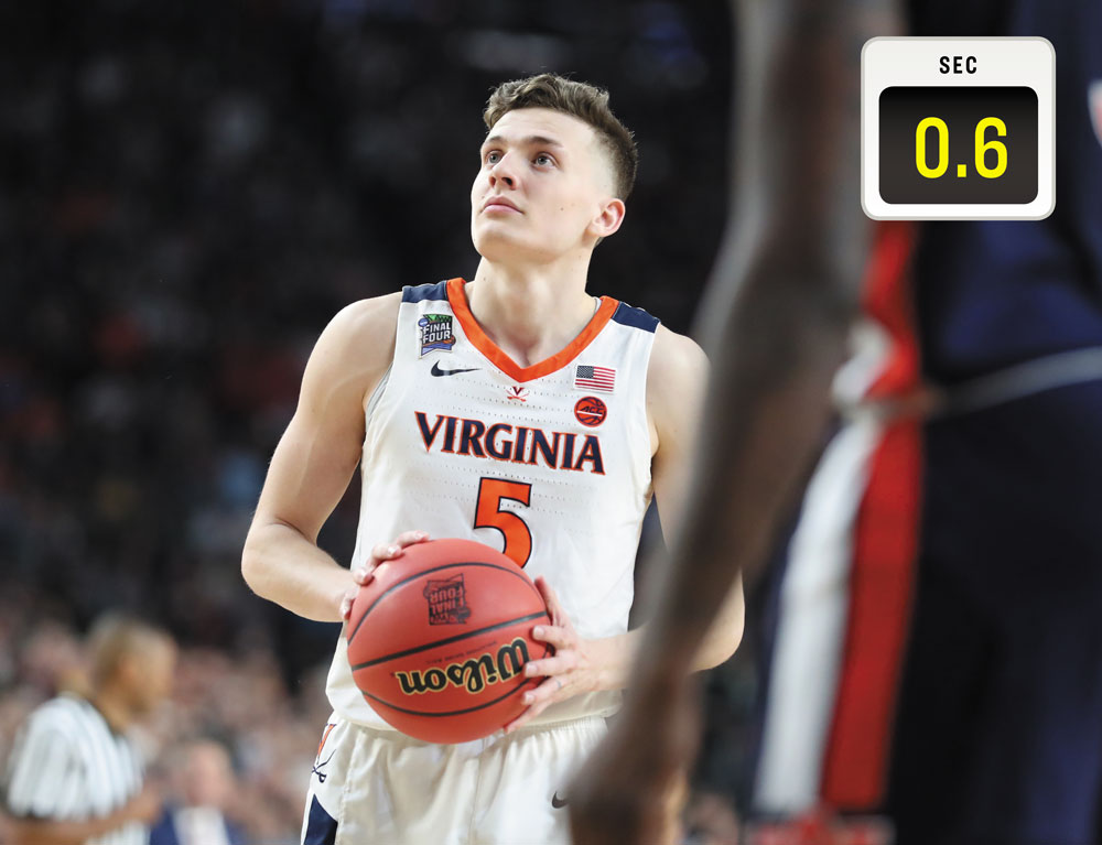 VIRGINIA TRAILED No. 13 seed Purdue 70-67 with 5.9 seconds remaining in the South Regional final when Ty Jerome went to the line for a bonus free throw. He made the first and, to this day, won’t reveal whether he missed the second mistakenly or intentionally. But this much is certain: The only free throw the Cavaliers missed after halftime—they made 14—was a blessing.