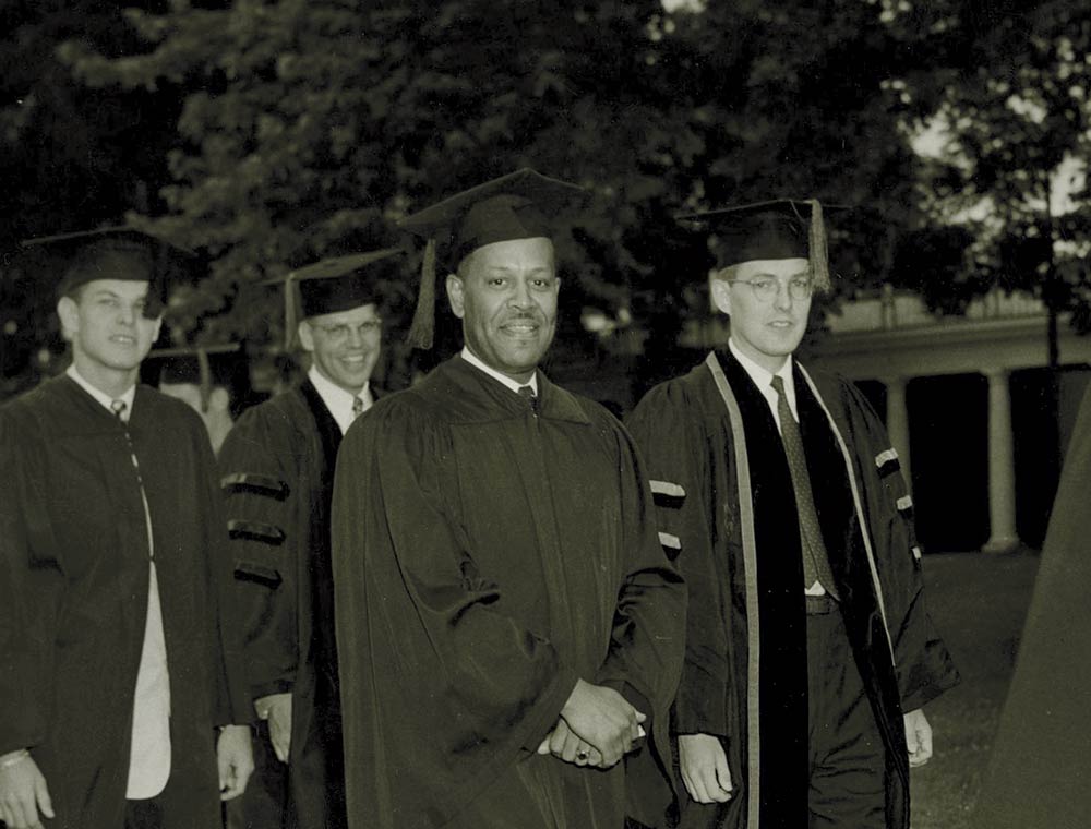 Walter N. Ridley was UVA’s first African-American graduate, earning a doctorate of education degree in 1953. Ridley began his career teaching psychology at Virginia State College and wanted to earn a doctorate, but UVA—a traditionally white university—was the only institution in the state that granted such degrees. After being repeatedly denied admission, Ridley enrolled at the University of Minnesota in 1939, where he researched whether audiovisual materials used in schools contained content that would be detrimental to black students. The research involved watching countless hours of film, and after suffering a hemorrhage in his eye, Ridley returned home to Virginia State College. In 1950, he had a chance meeting with Curry School Dean Lindley Stiles at a time when UVA had decided to seek high-achieving black students for enrollment. Ridley had a distinguished career in higher education: he taught at Virginia State College for many years and, from 1958 to 1968, was president of Elizabeth City State College in North Carolina.