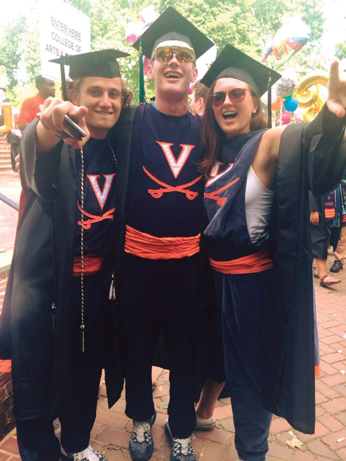 Rowe’s performance as Cavman would eventually help earn him the Class of 2009’s Pursuit of Happiness Award for radiating positive energy and embodying Wahoo pride. His younger brother Steven Rowe (Col class of ’12) performed as Cavman, too.