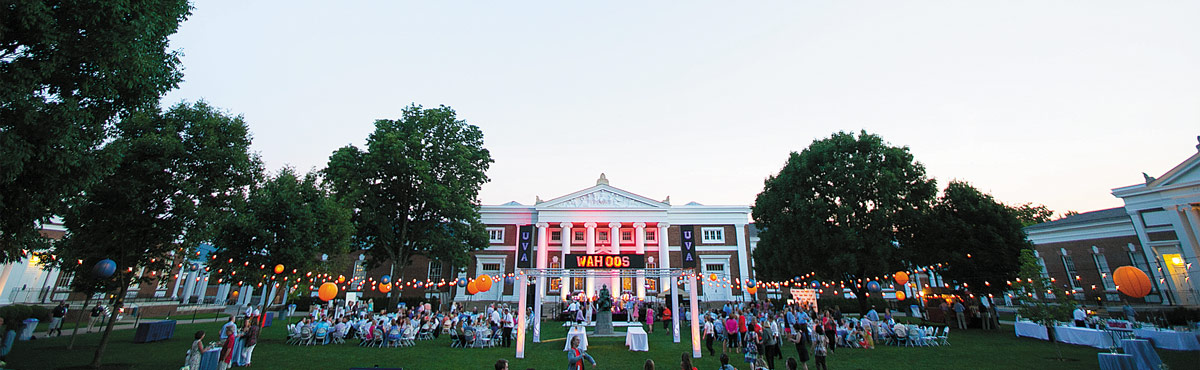 During one reunion back in the mid-’90s—no one remembers exactly when—a microburst downed a power line on Emmet Street, knocking out power to most of the University for the entire weekend. Reunions were smaller occasions then, not requiring meeting spaces all over the Grounds. So the reunions team brought a generator into Alumni Hall and carried on.
