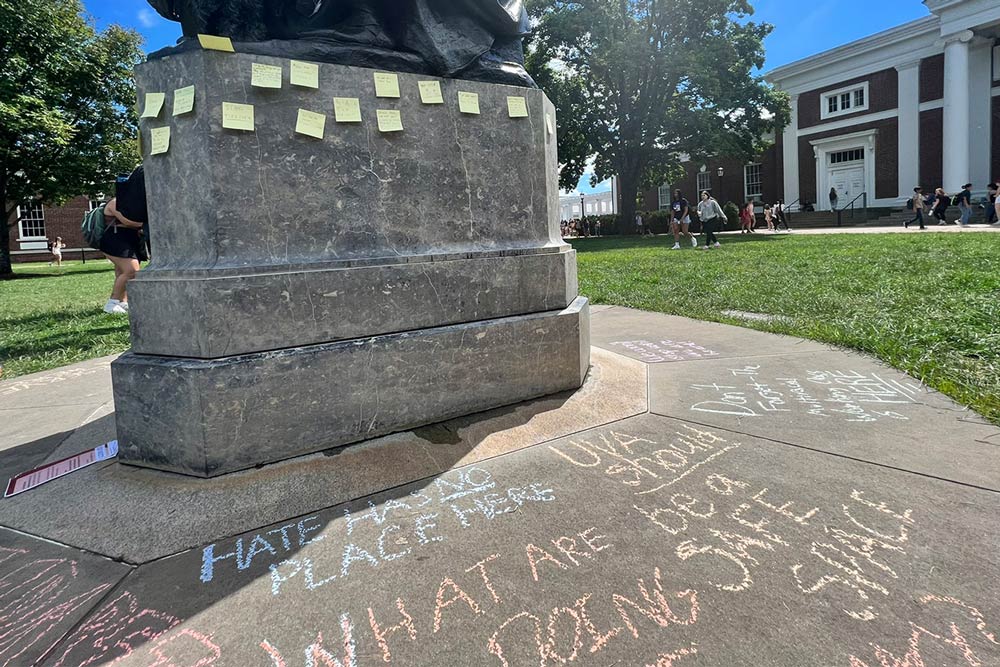 UVA Alumni Association President & CEO Lily West (Darden class of ’12), said she has spoken with numerous alumni and shares those concerns. “We condemn this act of hate and recognize that moments like these are unsettling, especially for Black students, and only add to the invisible weight already carried by so many. Everyone deserves to feel safe in our community, and we all have a role to play in making that possible.”