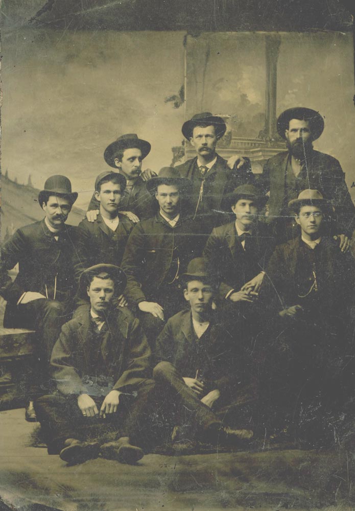 As several readers pointed out, the caption of this photo, “A rare tintype photograph of early University students, ca. 1850,” was incorrect. Although UVA’s Special Collections Library listed it as a photo of 19th-century UVA students, it is actually a photo of employees of R.C. Vandergrift & Son, Architects and Builders, Charlottesville, 1890. We regret the error.